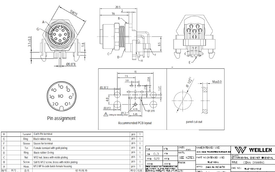 M12 8P A-CODING 母彎頭屏蔽型面板式PCB型連接器 前鎖數(shù)據(jù)手冊PDF下載
