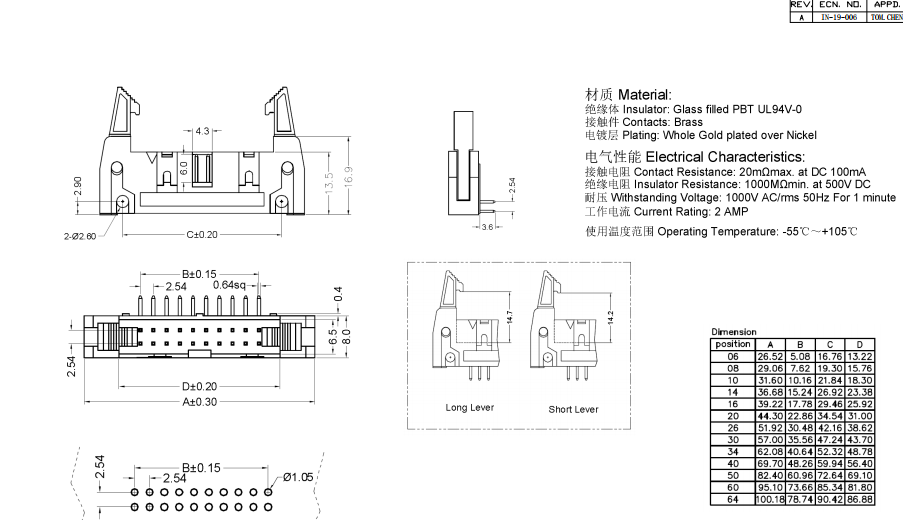 牛角 2x8P 彎針90度 2.54mm數(shù)據(jù)手冊PDF下載