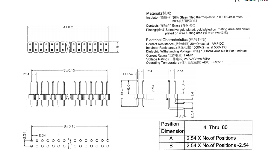 排針 單塑 2*5P 間距2.54mm 90度彎針數(shù)據(jù)手冊(cè)PDF下載