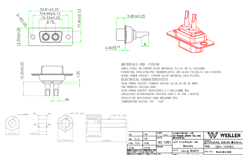 2W2 母焊線式 傳統(tǒng)鉚合 附11.8螺絲加2.0螺母 20A數(shù)據(jù)手冊(cè)PDF下載