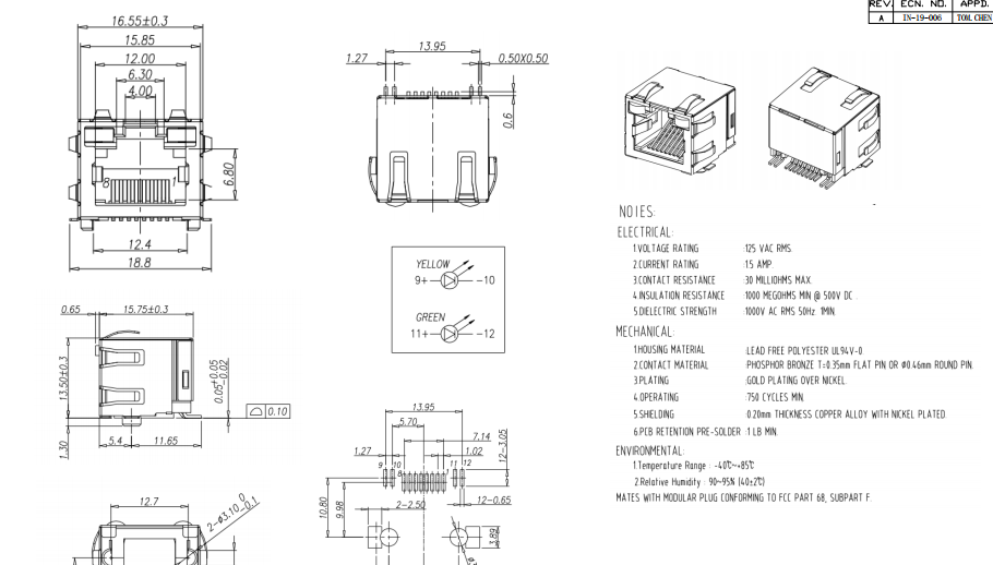 RJ45 Modular Jack 8P8C WITH SHELL AND LED SMT數(shù)據(jù)手冊(cè)PDF下載