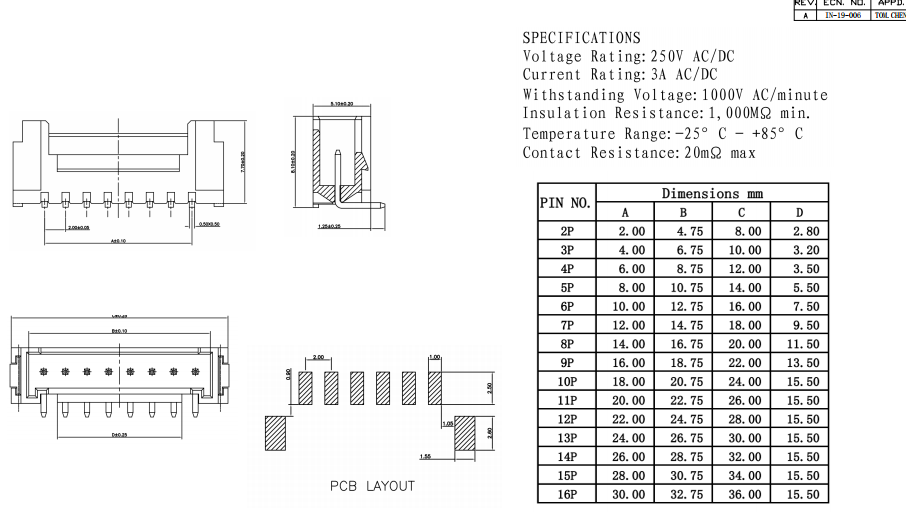 針座 1*10P 間距2.0mm YH2.0(帶扣)90度 貼片式數(shù)據(jù)手冊(cè)PDF下載