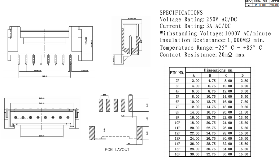 針座 1*10P 間距2.0mm YH2.0 (帶扣)180度 貼片式數(shù)據(jù)手冊(cè)PDF下載