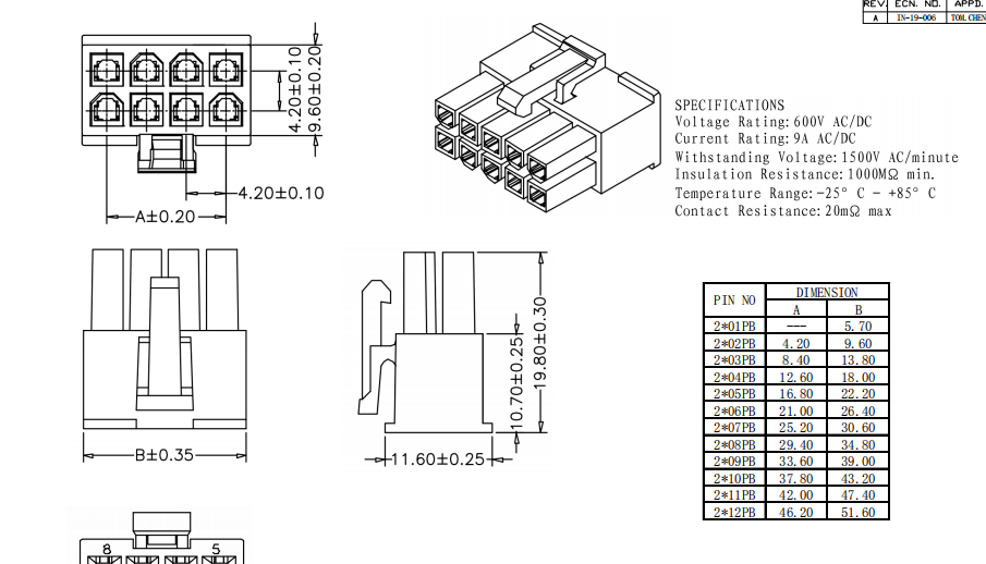 膠殼 2*3P 直插 間距4.2mm 數(shù)據(jù)手冊PDF下載