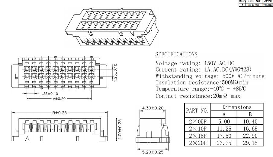 膠殼 2*5P 間距1.25mm 數(shù)據(jù)手冊PDF下載