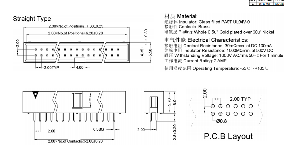 簡牛 2*5P 直插針180度 2.0mm數(shù)據(jù)手冊PDF下載