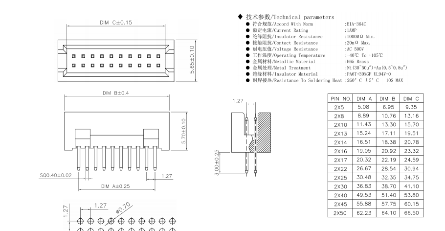 簡牛 2*Np 直插針180度 1.27mm數(shù)據(jù)手冊PDF下載