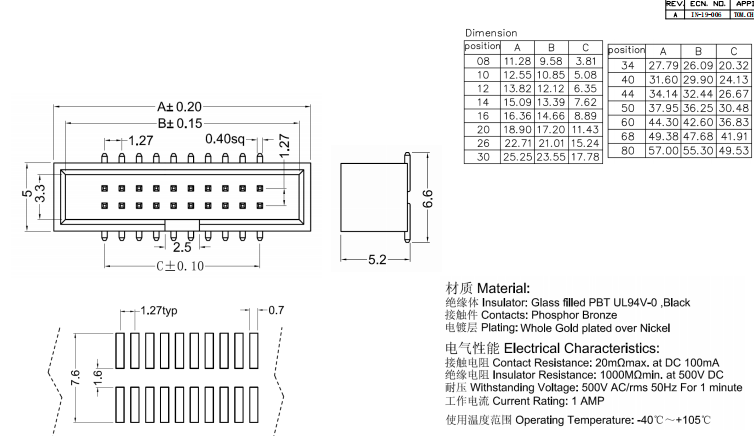 簡牛 2*5p 貼片式 1.27mm數(shù)據(jù)手冊PDF下載