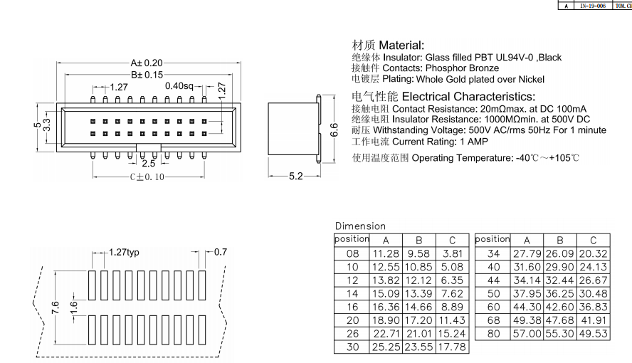 簡牛 2*7p 貼片式 1.27mm 剪掉0.5mm數據手冊PDF下載
