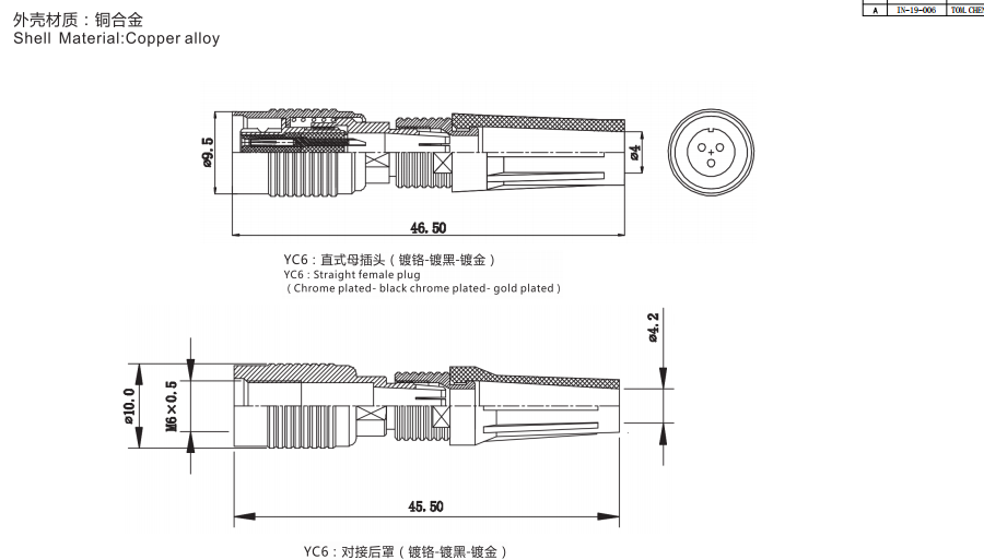 YC6 2芯 線對(duì)線 (兩端有黑膠)數(shù)據(jù)手冊(cè)PDF下載