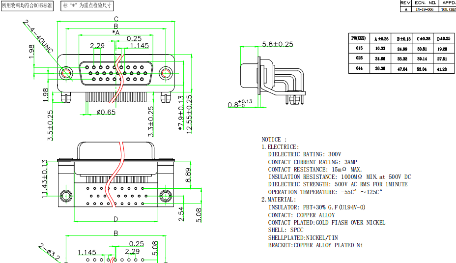 HDR 15P 母 彎焊板式鉚塑膠支架 H=8.89數據手冊PDF下載