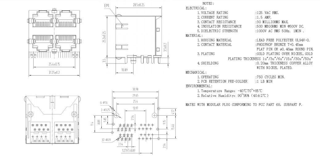 RJ45 Connector 2x2 Port 8P8C Without Led Module Jack數(shù)據(jù)手冊(cè)PDF下載