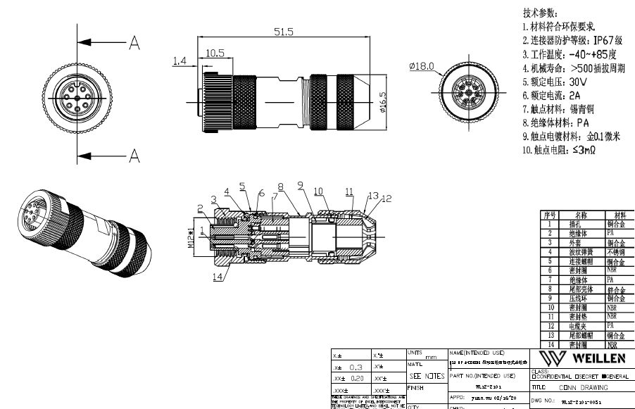 M12 8P A-CODING 母端壓接型組裝式連接器數(shù)據(jù)手冊PDF下載